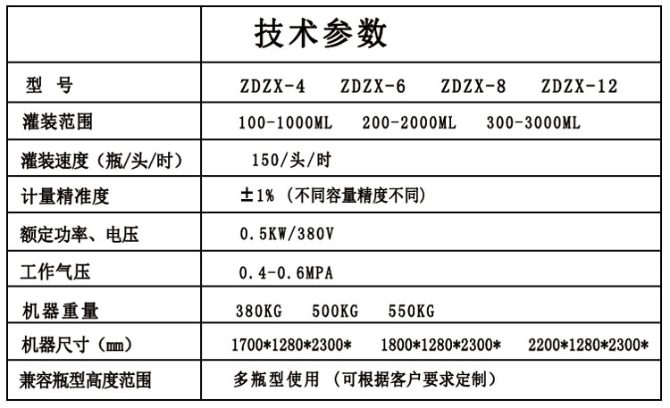 灌裝精度 | ±0.5% | ±0.5% | ±0.5% | ±0.5% | ±0.5% |